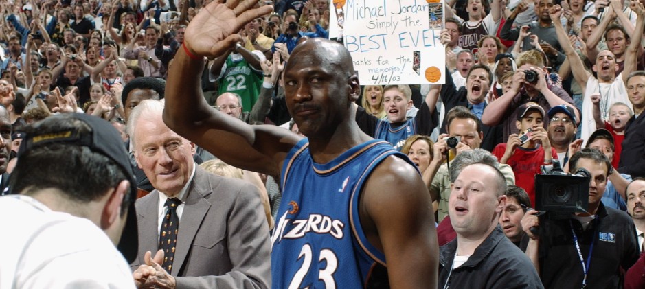 マイケル ジョーダンがワシントン ウィザーズの一員として、シカゴに降り立ち、スタンディングオベーションを受ける象徴的なゲーム。